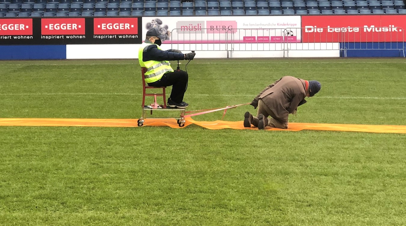 Alles ist bereit für unseren Dreh morgen im Stadion des FC Luzern, der Swisspor-Arena. Wird das Wetter halten? Heute Schneeregen, morgen trocken?